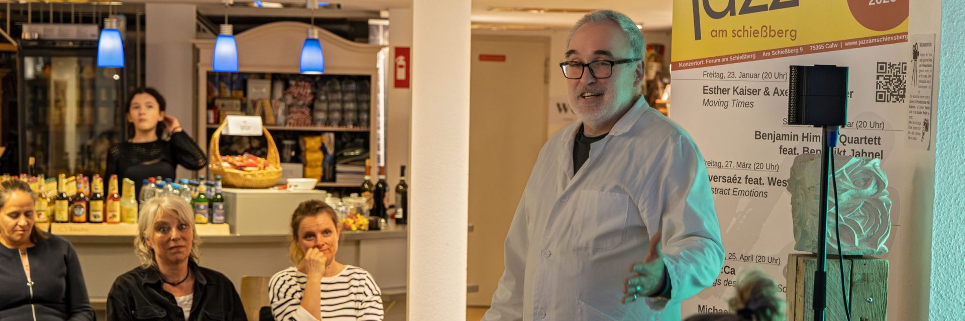 Rein kommen, wohlfühlen, besondere Hautnahmomente erleben, das ist es, was die Kultur-Apotheke am oberen Marktplatz in Calw ihren Besucherinnen seit Frühjahr 2023 bietet. Die Kultur-Apotheke ist seit ihrer Eröffnung ein lebendiger Ort der Begegnung mit offener und freundlicher Wohnzimmeratmosphäre und einem kunterbunten Angebot – getragen von einem Team, das dafür brennt, kleine und feine Veranstaltungen zu organisieren. Dies stets mit dem Ziel, die Besucher mit dem Programm auf außergewöhnliche Erlebnisreisen mitnehmen und in teils neue Sphären zu entführen: mit Begeisterung, Emotion und ganz viel Leidenschaft.